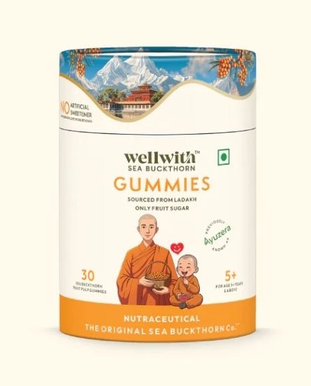 Elevate your daily wellness with WellWith Sea Buckthorn Gummies, a delicious and convenient way to harness the power of the Himalayan superfruit. Each gummy is packed with a potent blend of Vitamin C, antioxidants, and rare Omega fatty acids (3, 6, 7, and 9) to support a robust immune system, glowing skin, and sustained energy levels. Perfectly crafted for all ages, these soft and tangy-sweet treats make staying consistent with your health routine effortless. Experience the purity of wild-harvested Sea Buckthorn from Ladakh in a fun, easy-to-digest form that nourishes your body from the inside out.